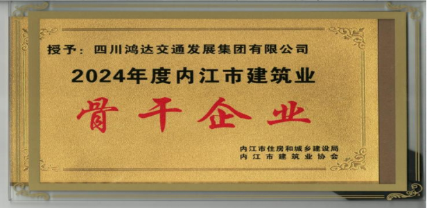 2024年度,四川鴻達交通發(fā)展集團有限公司獲“2024年度內(nèi)江市建筑業(yè)骨干企業(yè)”及“四川省建筑業(yè)先進企業(yè)”稱號,兩項榮譽是對鴻達交發(fā)公司深耕建筑領域的專業(yè)認可和長期堅持高質(zhì)量發(fā)展、積極履行社會責任的高度肯定。